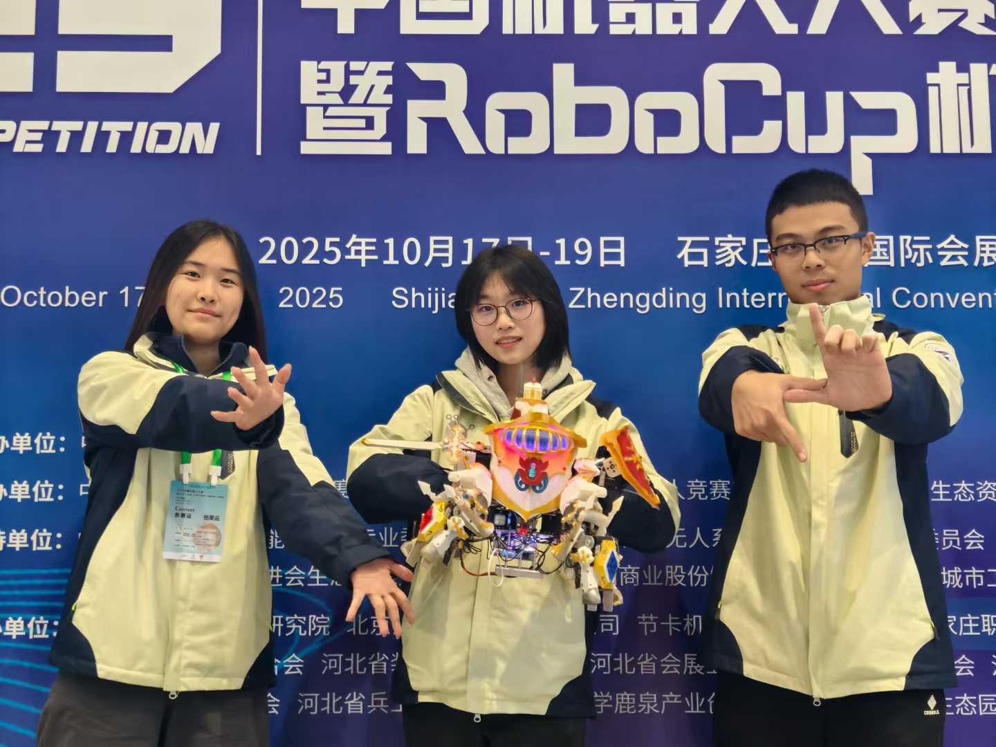 晚上她们复盘,很可能是上午比赛的时候被别的学校故意用干扰器破坏了,因为很蹊跷,前后都好的,就上场比赛的时候出现问题,而且瓜大的四只参赛队伍都出现类似的情况。华师大的一个队员贼兮兮的在边上来回走,出现了问题还过来说风凉话。 只是苦于无法举证,苦咽这个结果。